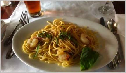For an appetizer, we chose the Prosciutto di Parma (thinly sliced and served with olives, $13). So good! In addition, I tried the Linguine ai Gamberoni (prawns sautéed in a white wine and garlic sauce, $17). The linguine was perfectly cooked. My accomplice went with the Pollo al Gorgonzola (free-range chicken breast in a delicate gorgonzola sauce, $17).