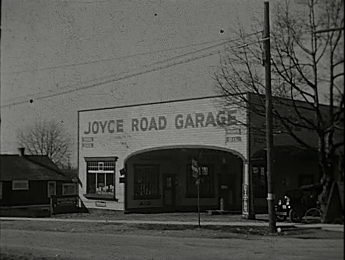 1913 Joyce Road and Wellington photo from Mrs. Walter S. Baird. The Joyce garage was built on the lower right corner beside the dark brown house, facing Joyce, which is shown looking south up the hill.