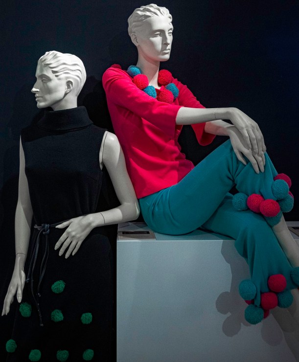Another sign of Italian heritage is the knit pom poms on the Paoli dress. The colourful fluffy attachments refer to the clown, popular in Italian opera, she said. The significance of this character spread across Europe by travelling Italian troupes.