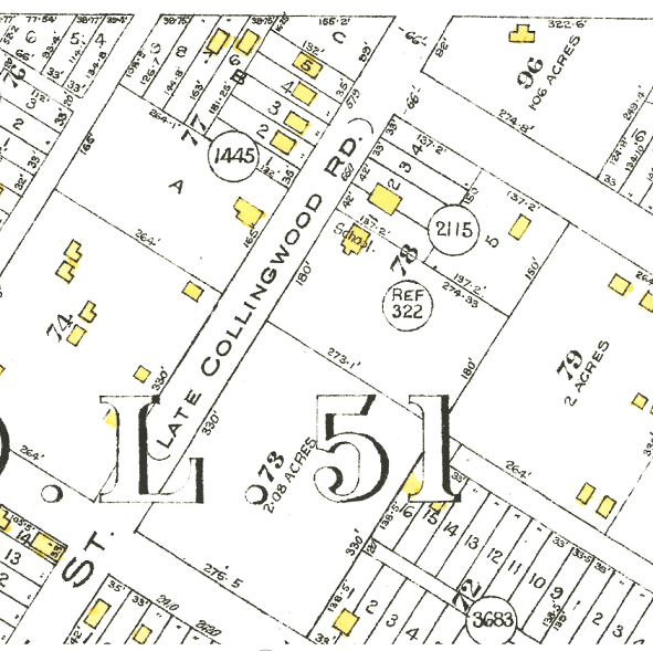 The school is on the lower grounds facing Rupert, formerly called Collingwood Road, with Charles Bayley’s house to the right of it. I assume the buildings across the road are the rest of the claim.